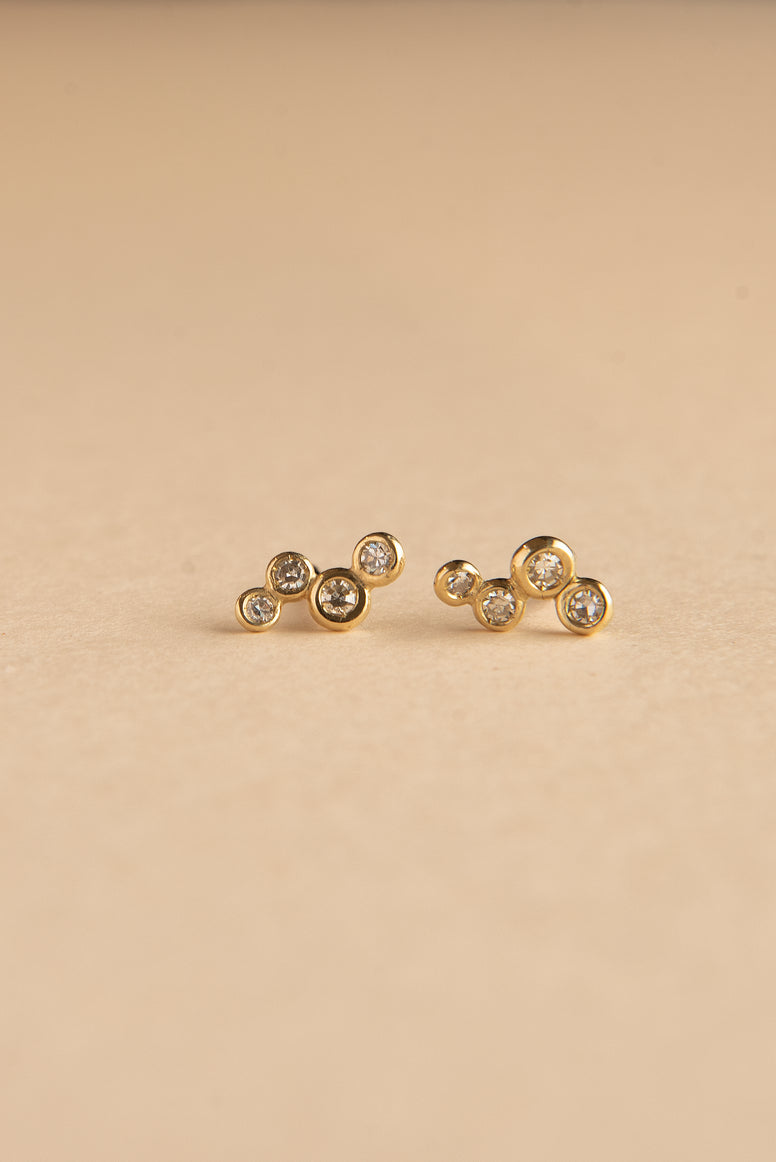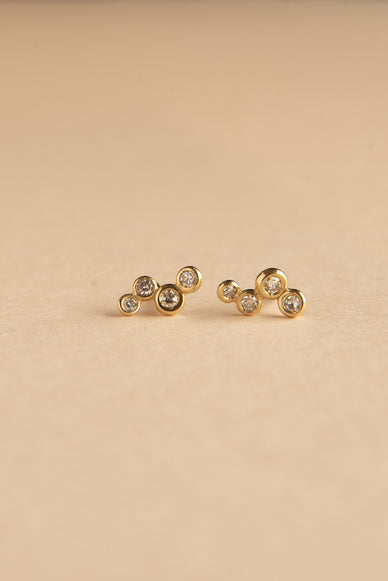 Gli orecchini Love sono realizzati in oro giallo e diamanti e composti da quattro sferette per lato, tutte diverse per dimensione e luce.